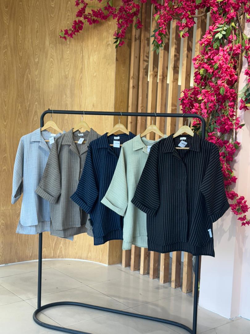 شومیز راه راه دکمه مخفی فری سایز تا سایز 52 سایز بزرگ