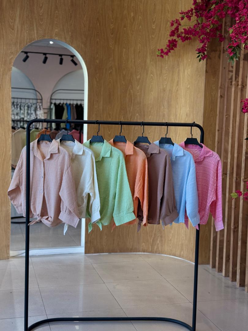 شومیز گره ای فری سایز مناسب فصل جنس پفکی