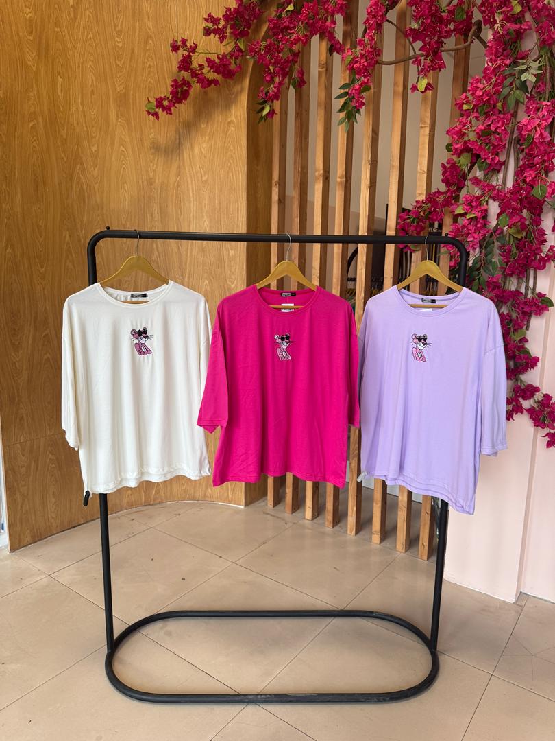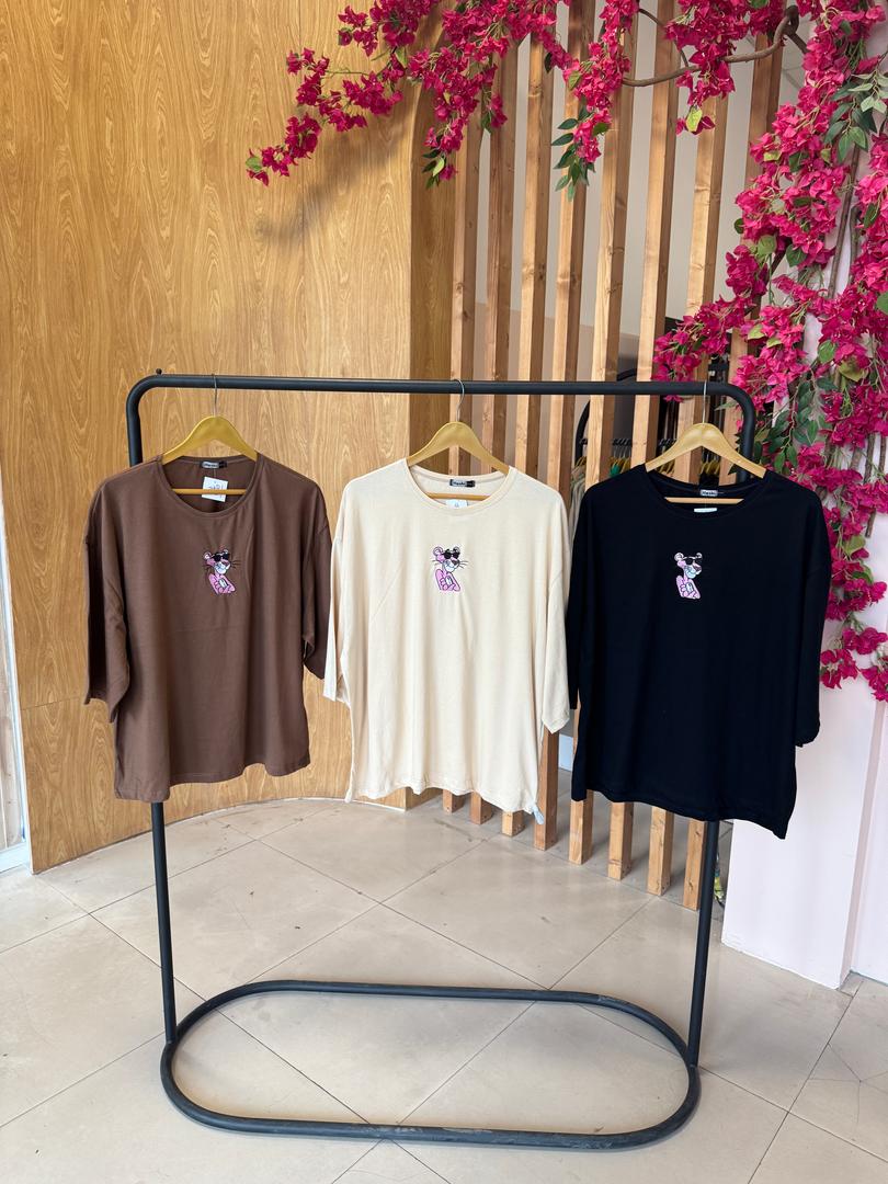 • تیشرت پلنگ صورتی فری سایز در رنگبندی کامل